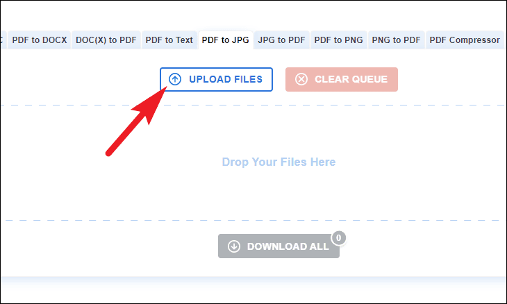 - Click on the UPLOAD FILES button to select your PDF file, or simply drag and drop the file onto the webpage to upload it.