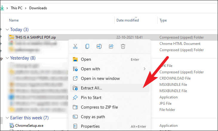 - Right-click on the zipped folder and select Extract All from the context menu.