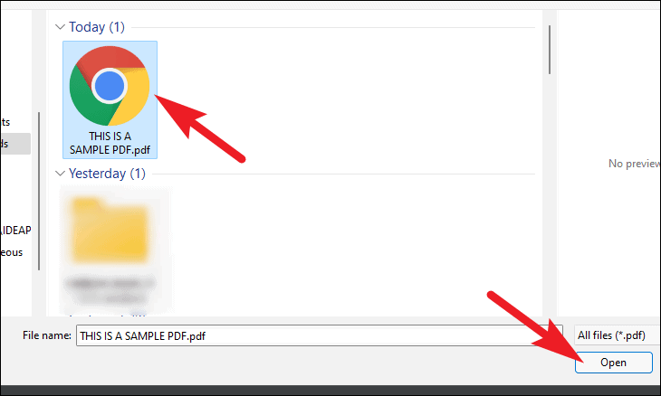 - Browse your computer for the PDF file you want to convert, select it, and click on Open.