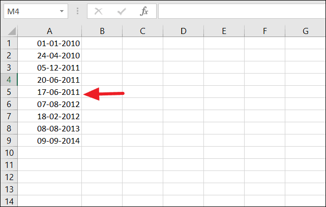 Your text dates are now converted into proper Excel date formats and should be right-aligned in the cells.
