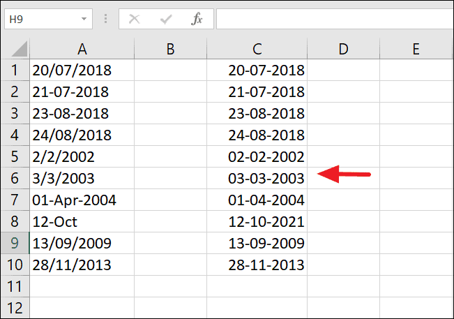 Note: Ensure that all text dates are in the same format before using this method. If formats vary (e.g., some in DMY and others in MDY), the conversion may produce incorrect results.