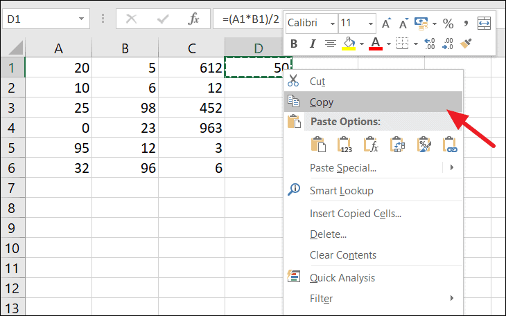 Step 1: Copy the cell containing the formula by selecting it and pressing Ctrl + C.
