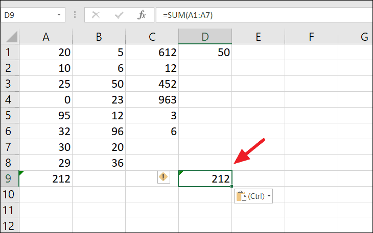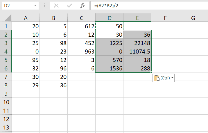 Step 3: Press Ctrl + V to paste the formula into the selected cells.