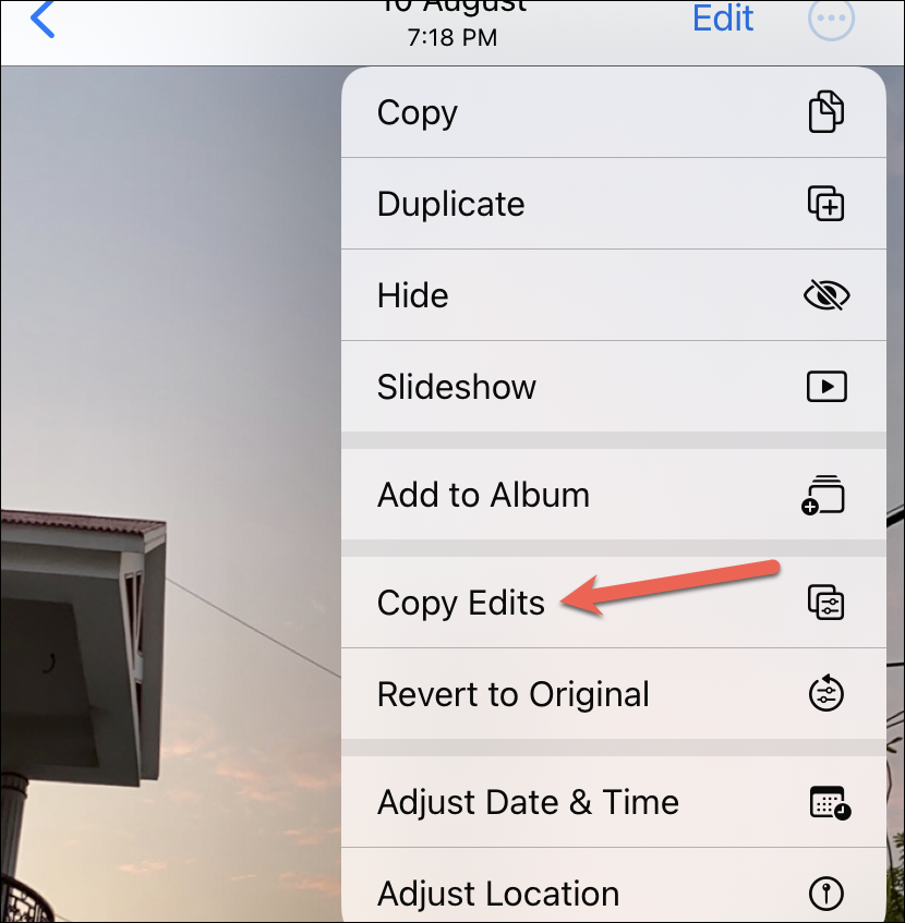 If you still have to make edits to a photo, you can also copy the edits from the editor itself. Open the photo and tap ‘Edit’ to make the desired adjustments.