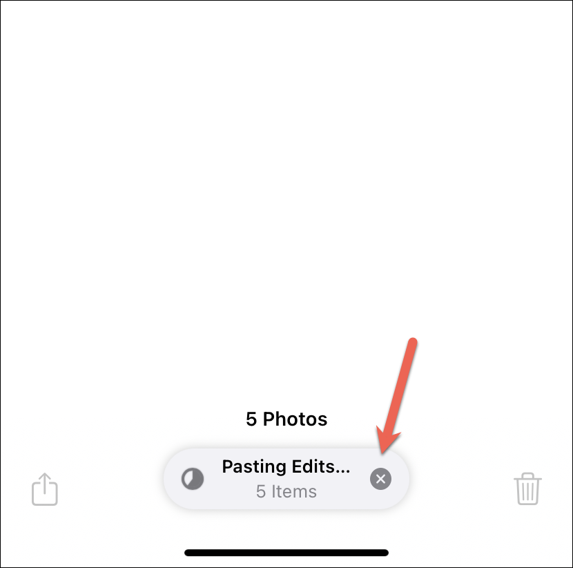 It might take a few seconds for the edits to apply, depending on the number of photos. You can cancel it while the edits are still pasting by tapping the ‘x’ on the ‘Pasting Edits’ message.
