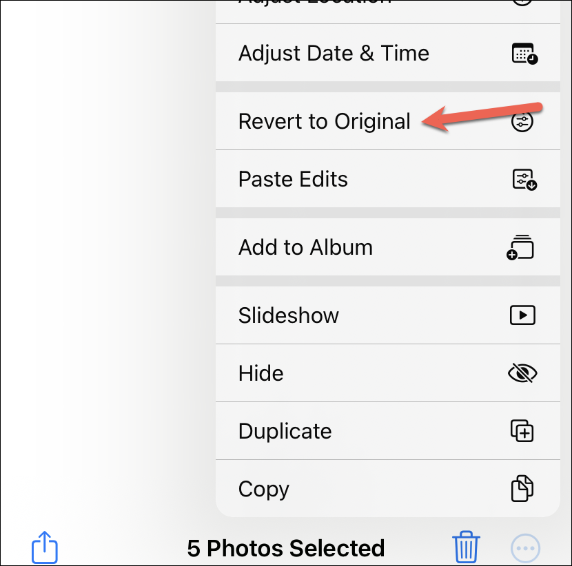 You can also revert the edits made to the multiple photos in one step. Select the photos you want to revert to original and tap the three-dot menu in the bottom-right corner.