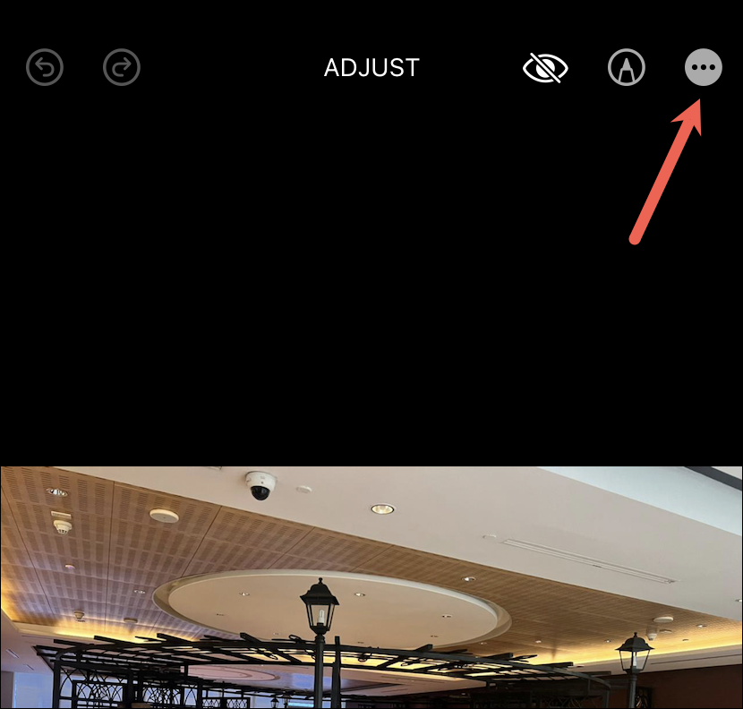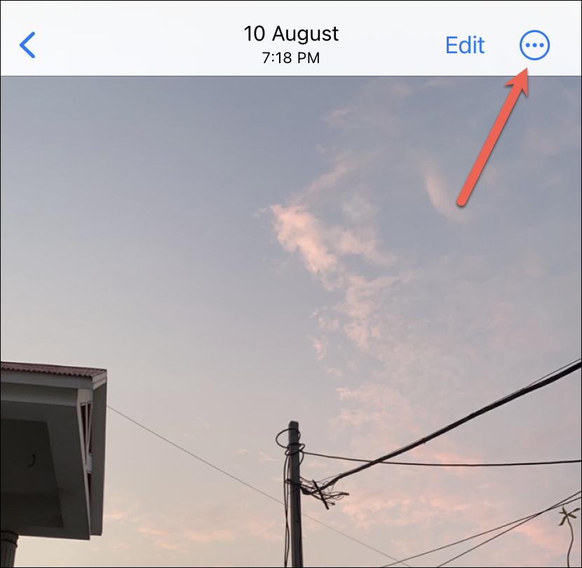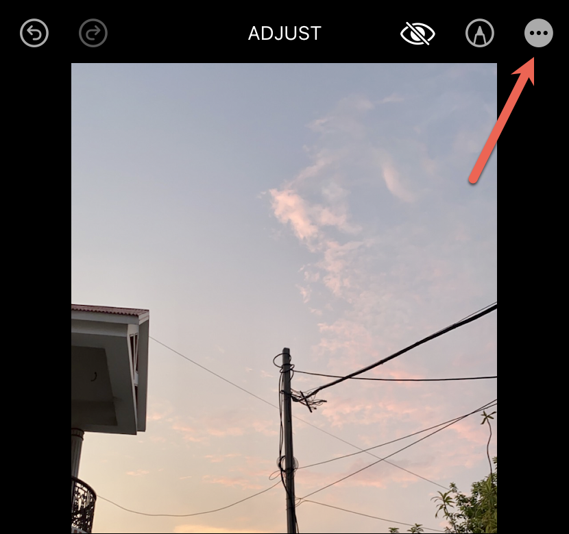 Open the Photos app. If you already have a photo with the desired edits, open it. Tap the three-dot menu in the upper-right corner of the screen.