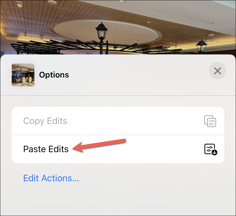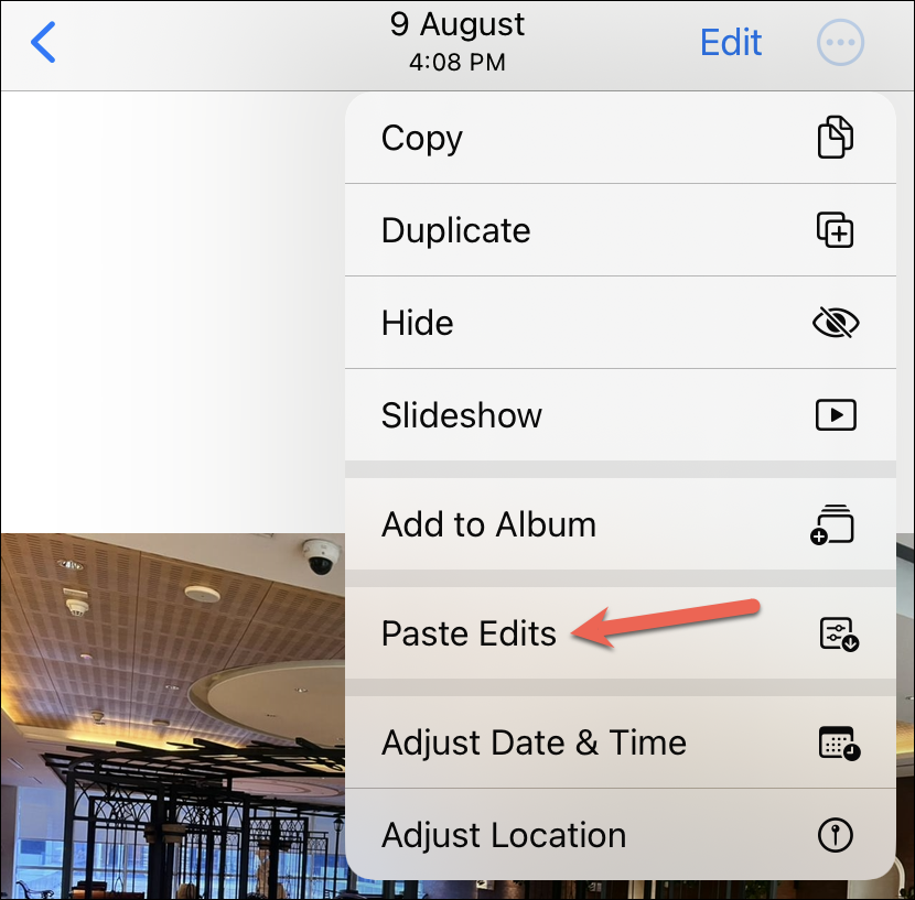 Finally, tap ‘Paste Edits’ from the overlay menu.