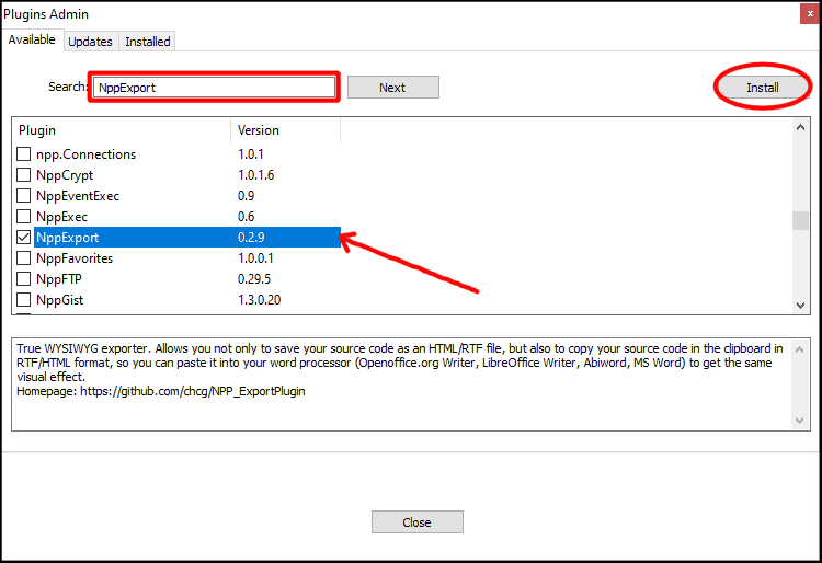 Method 2: Install NppExport via Plugins Admin in Notepad++