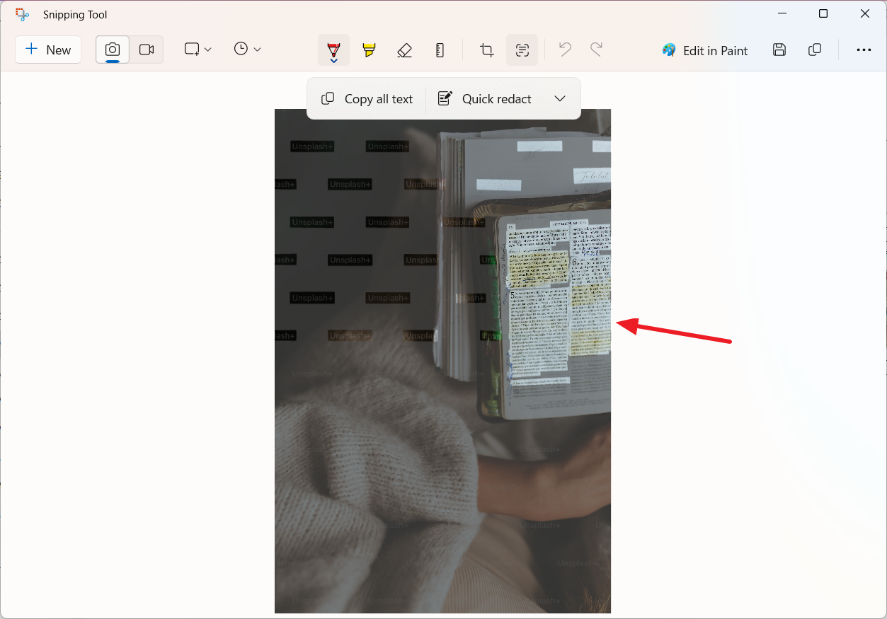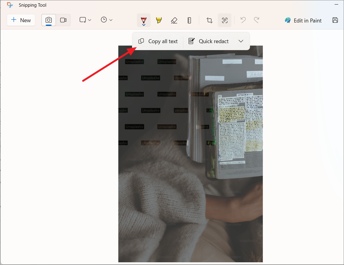 To extract and copy text from an image, you can either take a new screenshot using the Snipping Tool or open an existing image with the Snipping Tool app.