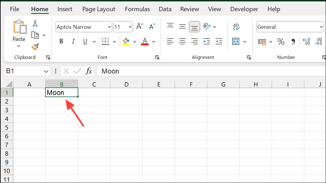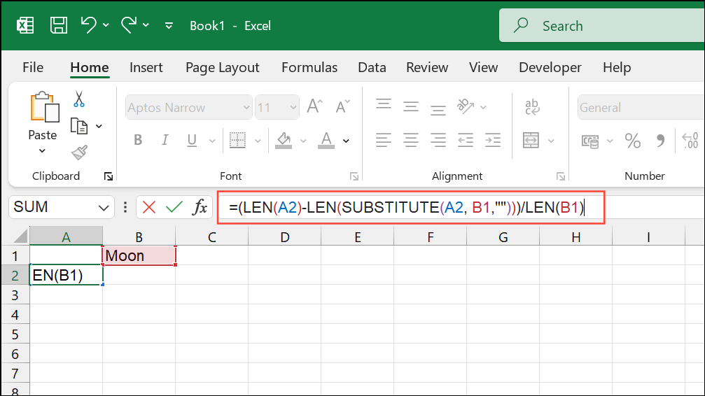 Step 1: Place the word you want to count in a separate cell (for example, B1 contains moon).