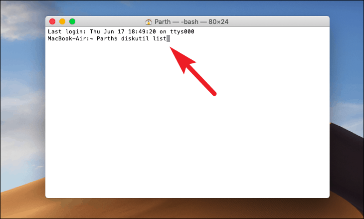 - In the Terminal window, type the following command and press Enter to list all connected storage devices: