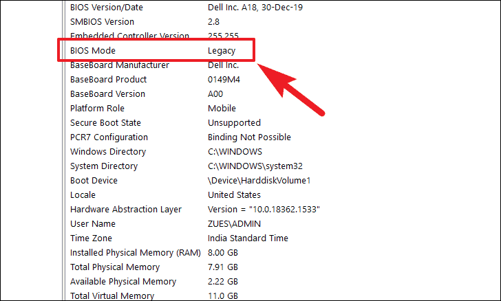 Step 7: In the System Information window, locate the BIOS Mode entry. It will display either Legacy or UEFI.