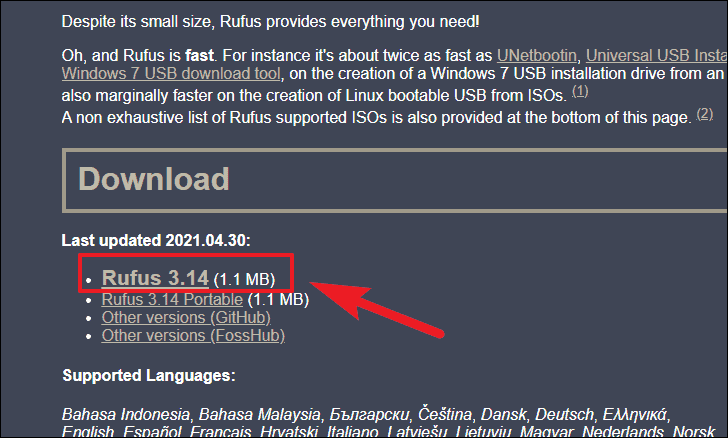 Step 1: Visit the Rufus website at rufus.ie and download the latest version from the downloads section.
