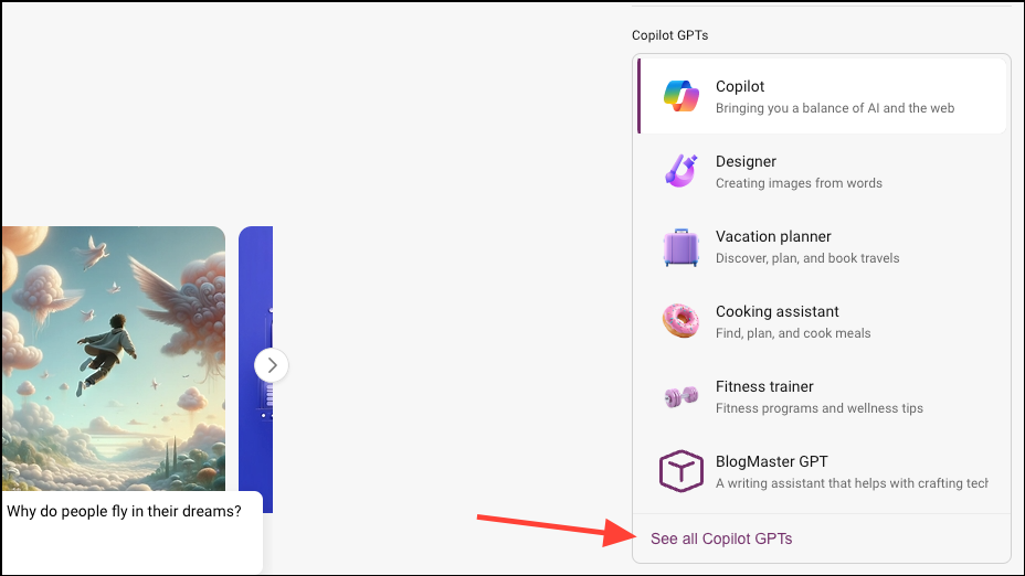 - Then, click the 'See all Copilot GPTs' option on the right.