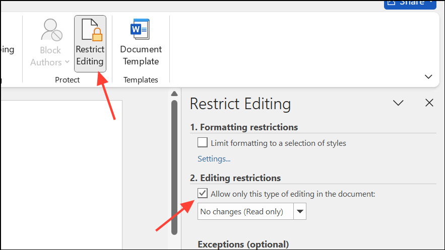 - On Word for Mac or in the web version, some features (like full editing restrictions) may be limited compared to the Windows desktop version.