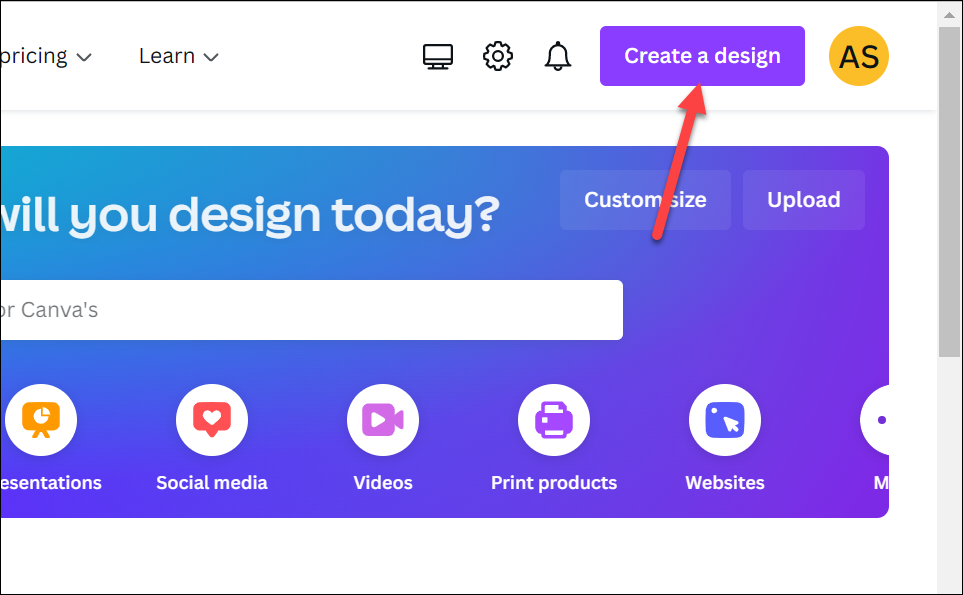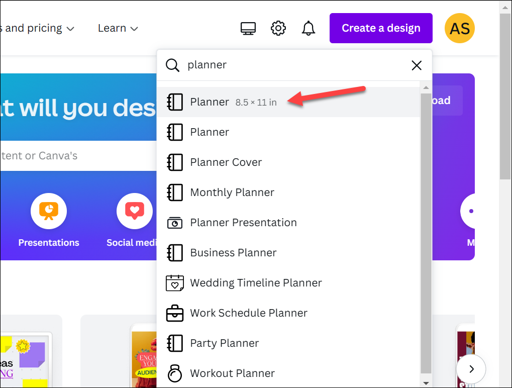 To create the planner, go to canva.com and log in to your account. Then, click the ‘Create a Design’ button.