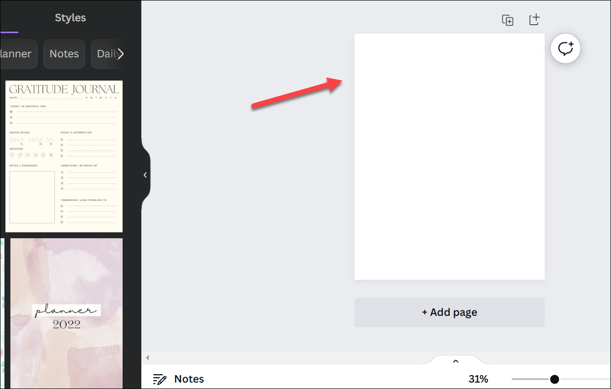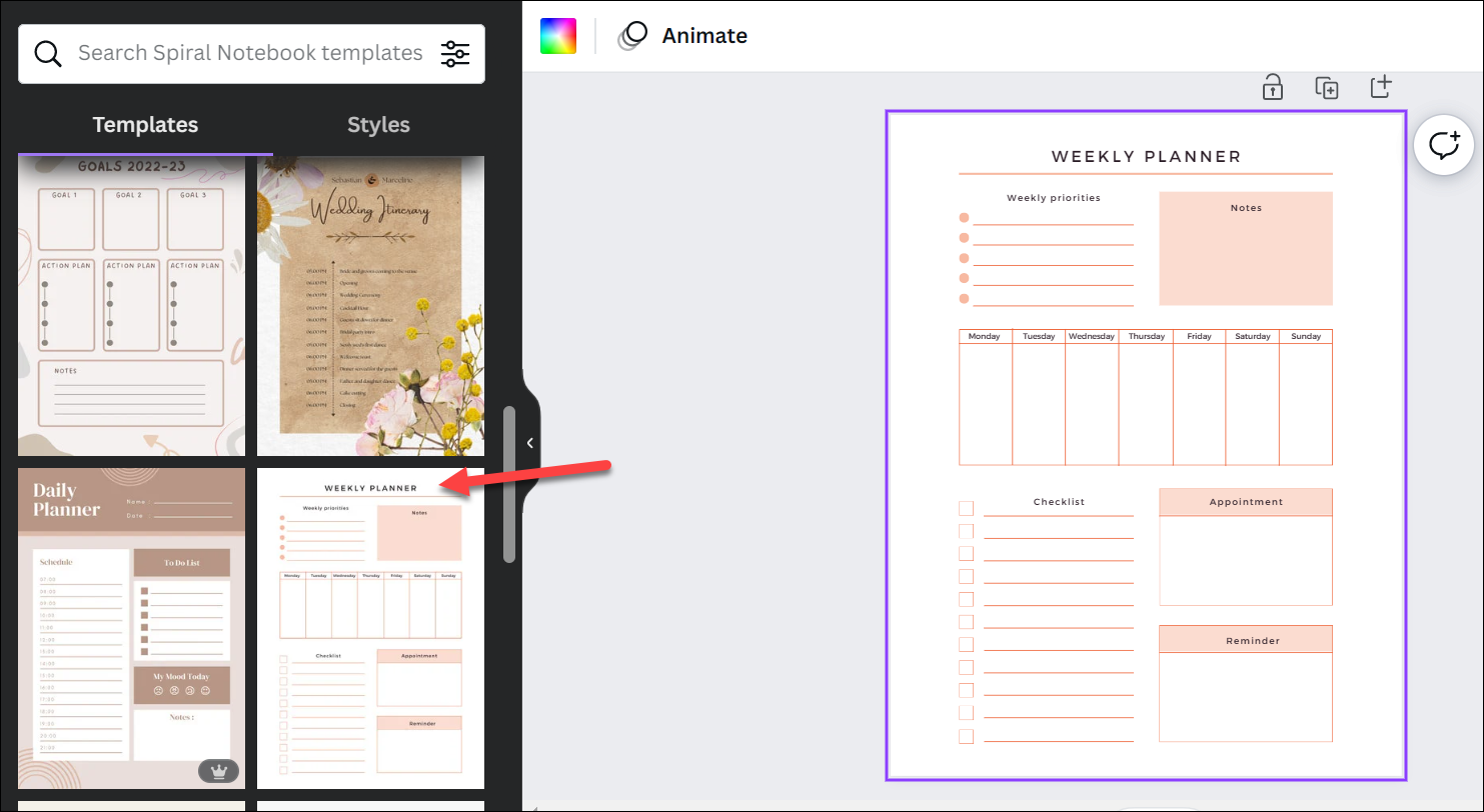 An empty design will open with template options to choose from on the left. You can create your planner from scratch also, but we’d recommend using a template for faster results.