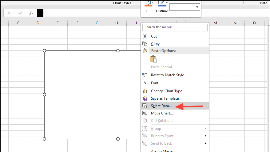 - You can edit the chart by right-clicking on it again and clicking on the 'select data' option as before.