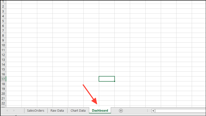 - Click on the 'dashboard' worksheet at the bottom of the Excel workbook to switch to it.