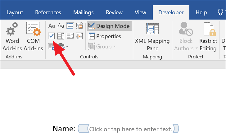 The Developer tab will now appear in the main menu ribbon, providing access to various form controls.