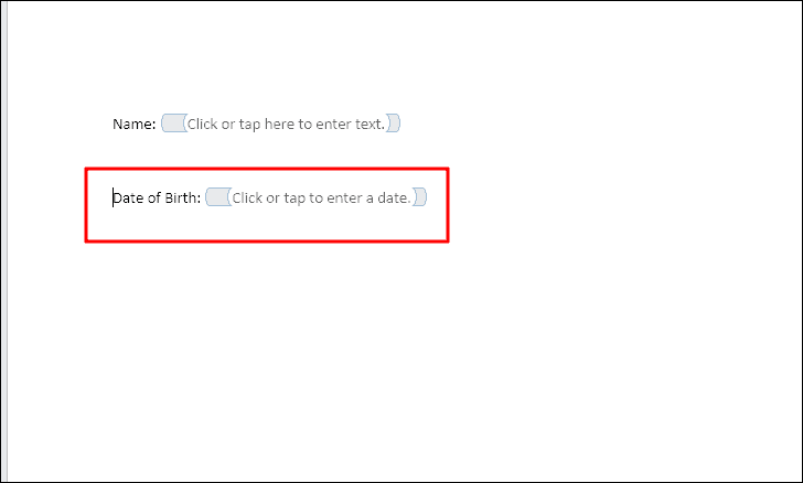 Step 1: Place your cursor next to Date of Birth. In the Developer tab, within the Controls group, click on the Date Picker Content Control icon, which resembles a calendar.
