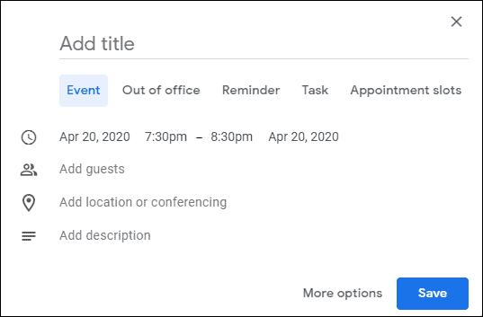 Step 2: In the event details window, enter the necessary information such as the meeting title, date, and time. If you have specific guests you want to invite, add their email addresses in the Add guests field. Upon adding guests, a Google Meet link will automatically be generated and attached to the event.