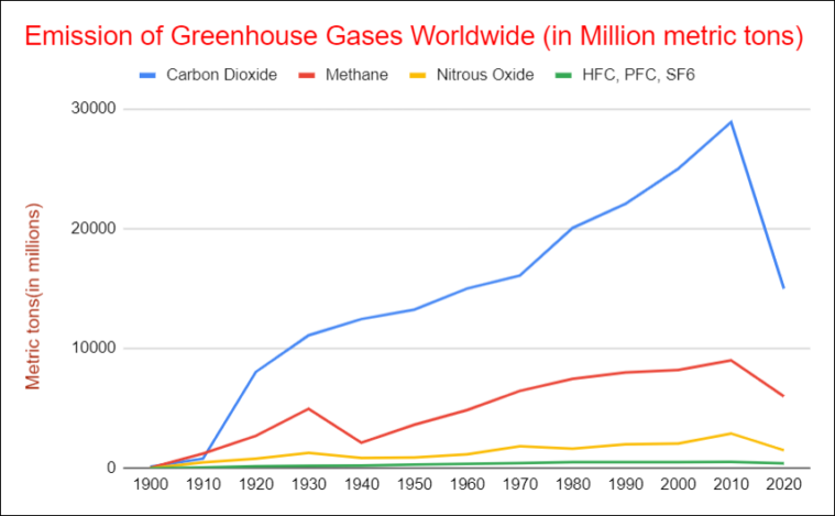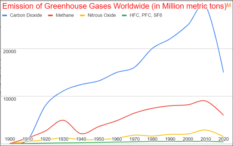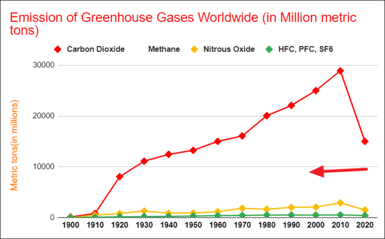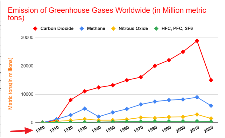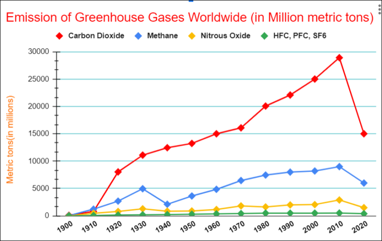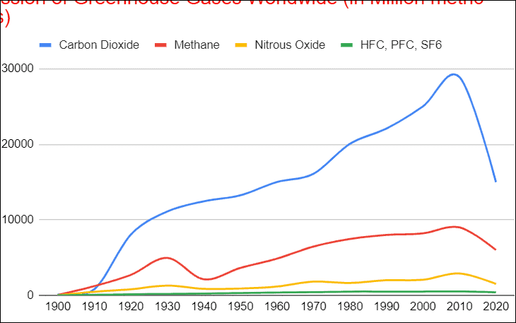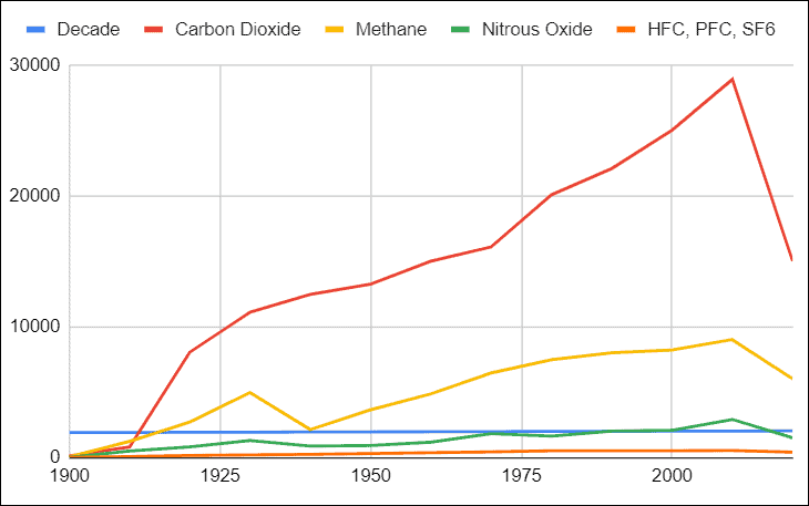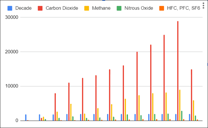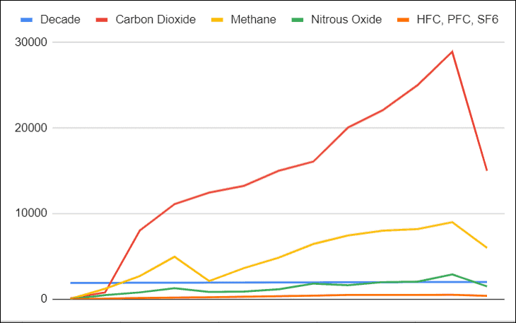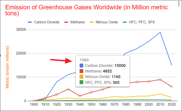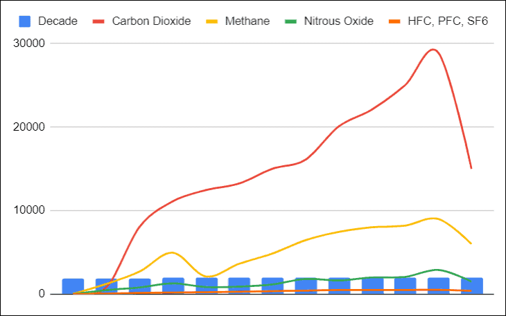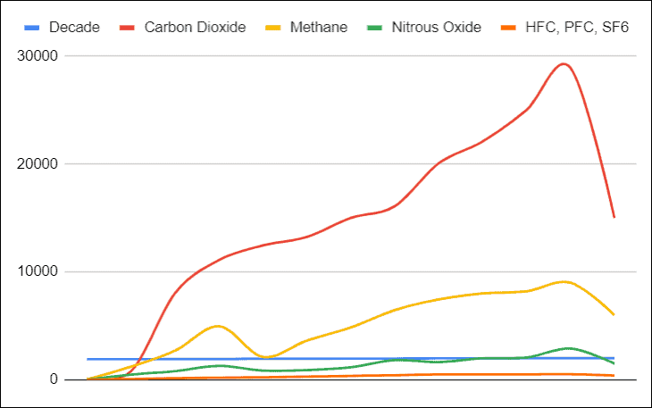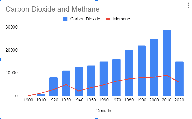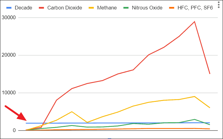 As you can see Category Carbon Dioxide is compared against Methane over time, which gives you a clear view of which category is higher and lower.