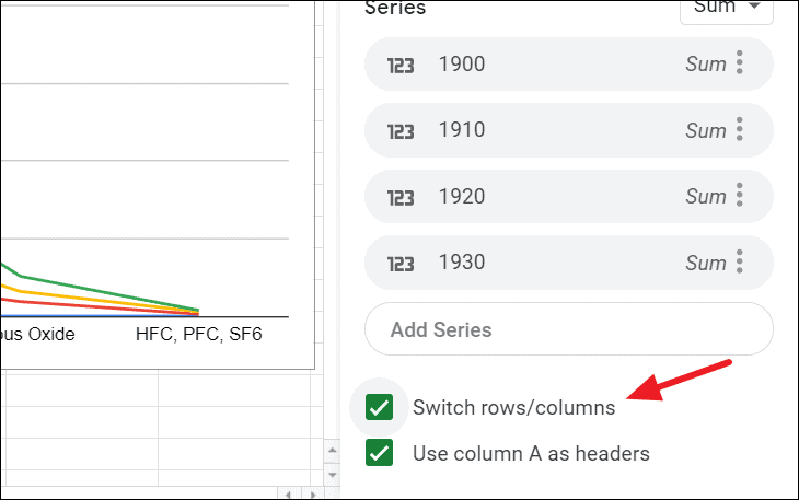 When you check the ‘Switch Rows/Columns’ box in the Setup, it will switch your X-Axis data to the Y-Axis, and vice versa.