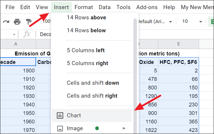 Or click on the ‘Insert’ tab in the menu bar and then select the ‘Chart’ option.