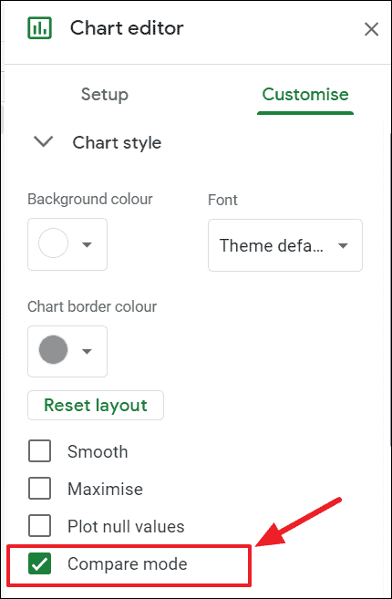 This is how you make a comparison mode line chart in Google Sheets.