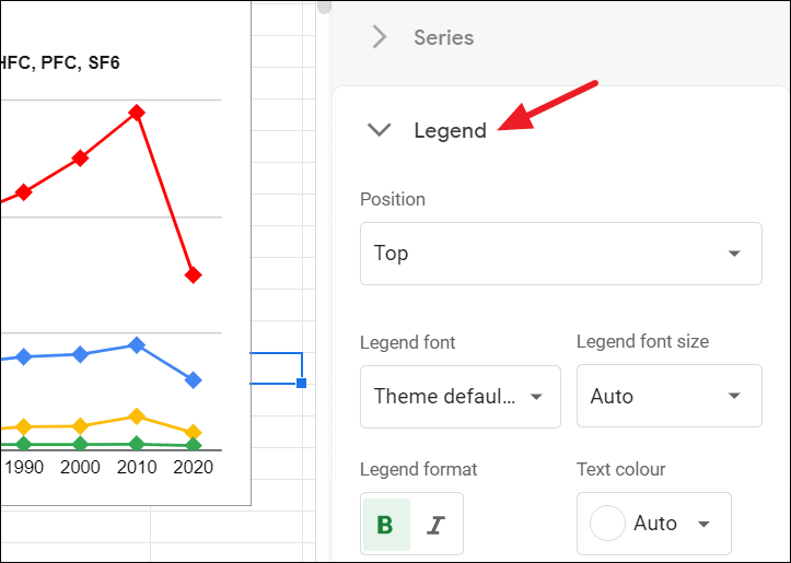 Under the Legend section, you can customize the legend’s font, size, format, text color as well as position of the legend.