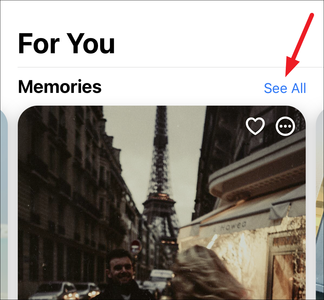 At the top, you’ll see the Memories curated by the iPhone for you. Tap ‘See All’ to see all the memories curated by your iPhone.