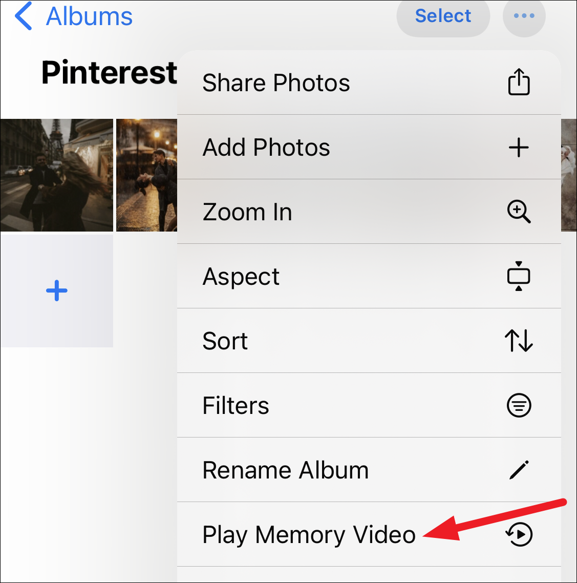Note: When you’ve made a memory from an album, you cannot add any more photos to it after you’ve made the memory. Even when you make the memory for a person or a day/ month, you can only add more photos from photos available for that particular person or day/month. The same goes for memories that the iPhone makes on its own. The only photos available are for that place or event that the Photos app associates with that memory and some photos don’t make the cut.