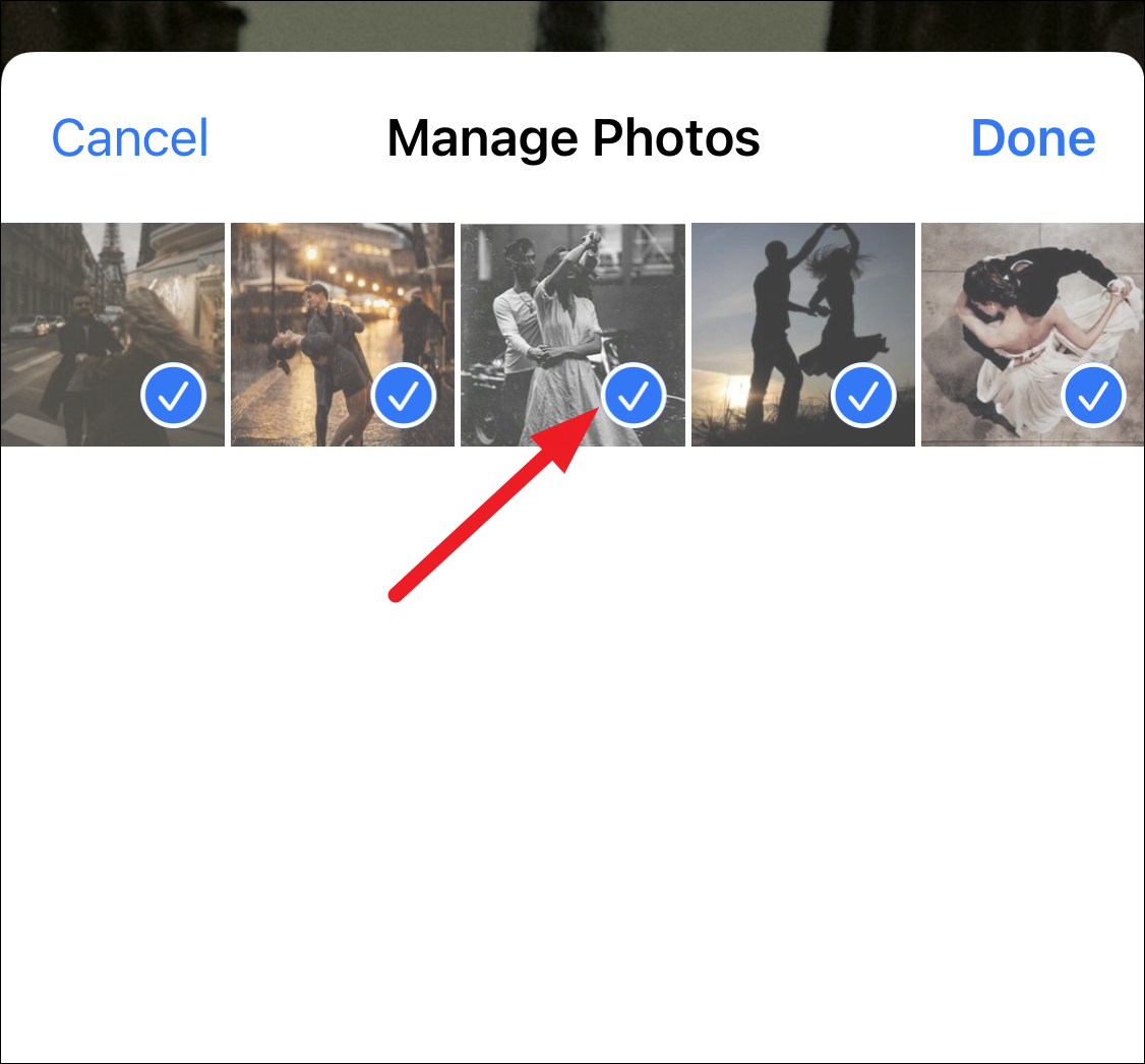 Select or deselect the photos you want to add or delete. Tap ‘Done’.