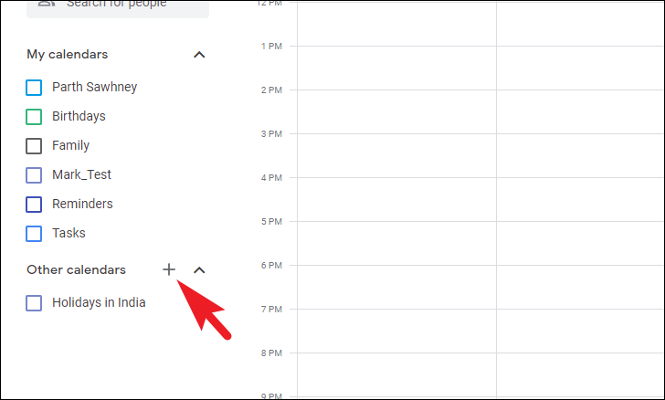 Once logged in, click on the ‘+’ icon following the ‘Other Calendars’ field.