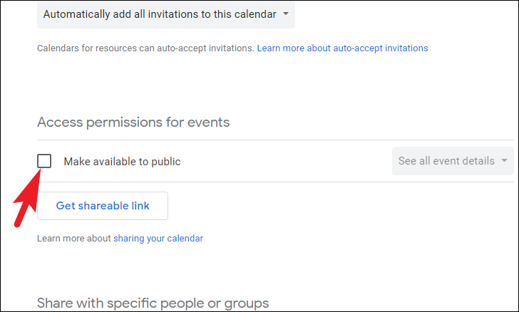 Note: This will make your calendar completely public and it will also appear in Google searches and is different from sharing the calendar with only a particular set/group of people.