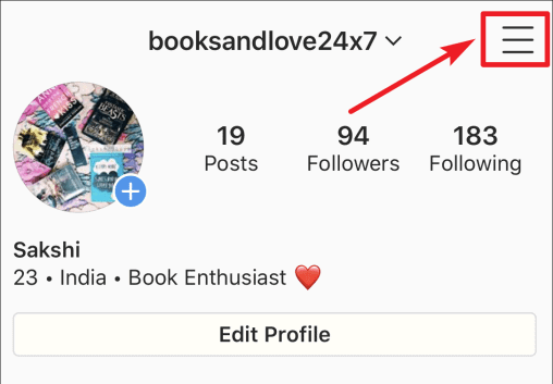 Step 3: In your profile, tap on the menu icon—three horizontal lines stacked at the top right corner.