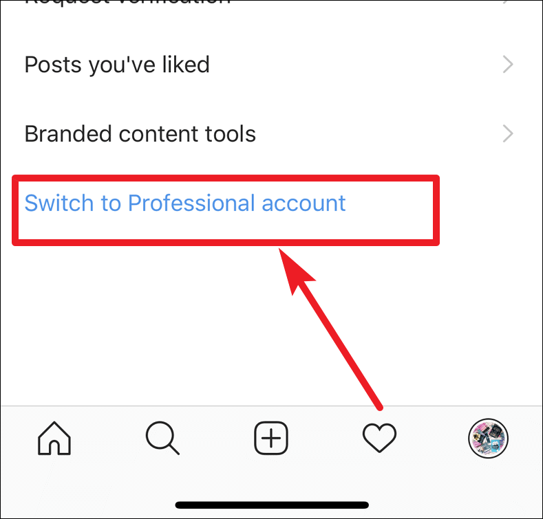 Step 6: Scroll down and choose the option 'Switch to Professional Account'.