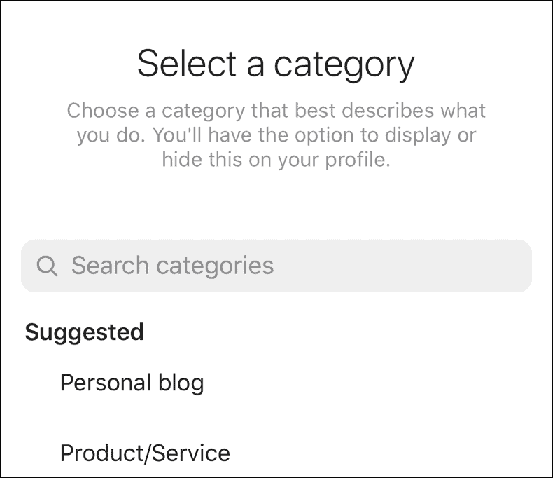 Step 9: Choose a category that best describes your business. If you don't see the exact category, try searching with related keywords or synonyms. Once selected, tap Next.