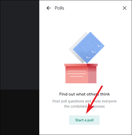 Also, only the meeting moderator with an eligible account, i.e., the person who started or scheduled the meeting, can create polls in Google Meet.