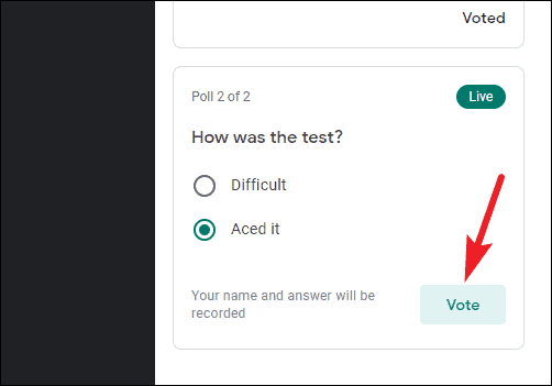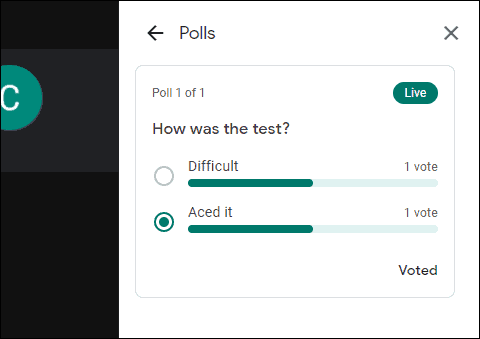 Participants don’t need an eligible Google Workspace account to vote in Google Meet polls. In fact, unlike Breakout Rooms, even participants who are attending the meeting as a guest, i.e., without logging in to a Google account, can submit responses in a poll.