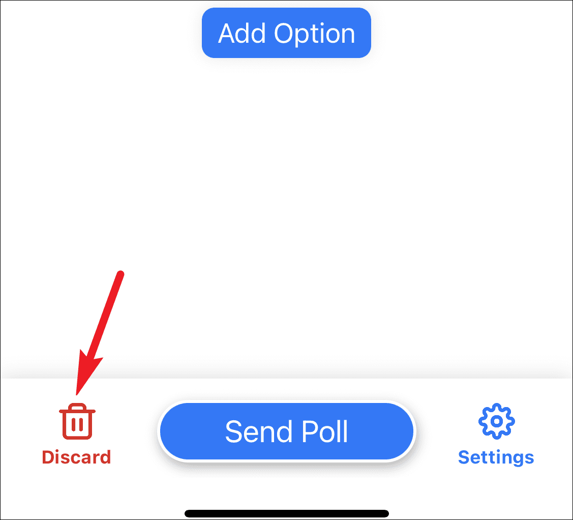 Step 12: If you need to discard your current poll draft and start over, tap 'Discard' in the lower-left corner and confirm your choice when prompted.