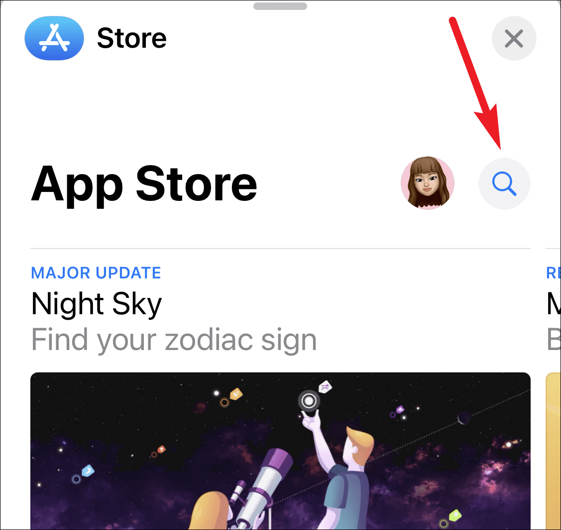 Step 4: Tap the search icon in the upper-right corner of the App Store screen.