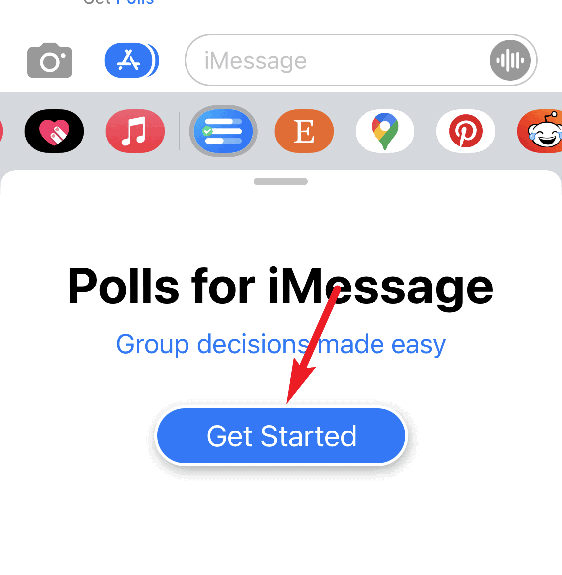 Step 1: Return to the conversation where you want to send the poll. Tap the grey App Store icon again to open the app drawer, and then tap the 'Polls' icon to launch the Polls for iMessage app within your conversation.