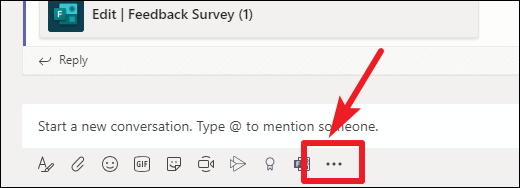 Step 1: In the channel or chat where you want to create the poll, click on the Messaging Extensions (three dots) below the message box.