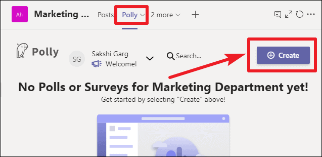 Step 6: To create a poll, click on the Create button in the Polly tab.