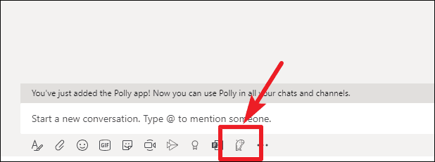 Step 7: If you're using Polly from the message box, click on the Polly icon below the message box to open the poll creation window.