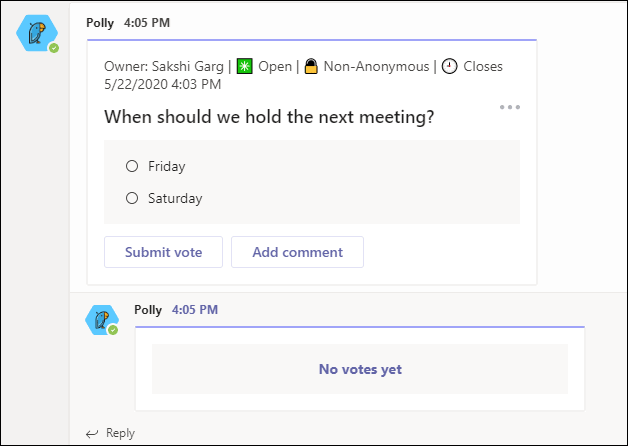 The poll will appear in the channel, and team members can vote and see the results based on the settings you chose.