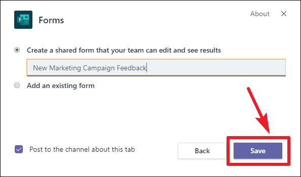 Step 3: Choose to Create a shared form that your team can edit or Add an existing form to collaborate on. Enter a name for the form and click Save.